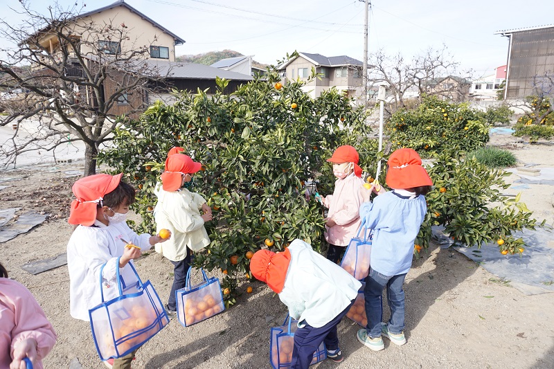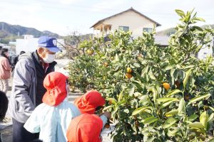 いつも大変お世話になっている地域の方の畑で、みかん狩りをしました。