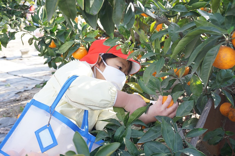 説明を聞き、園児たちはひとつひとつ丁寧にはさみを入れ、たくさん収穫しました。