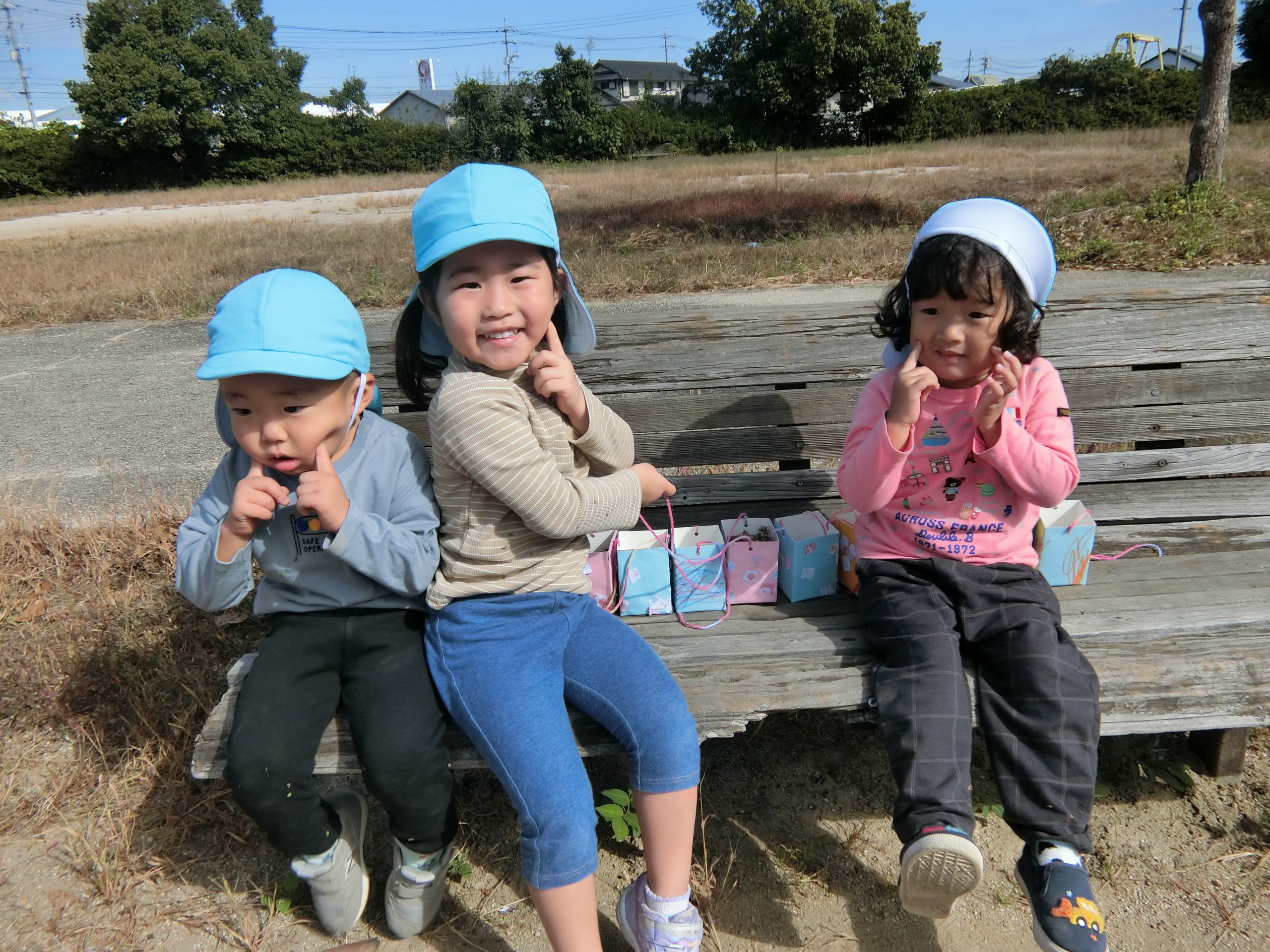 秋の遠足がありました♪ 自分たちで作ったどんぐり入れのバックをもって公園へ出発!!