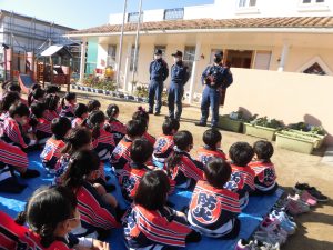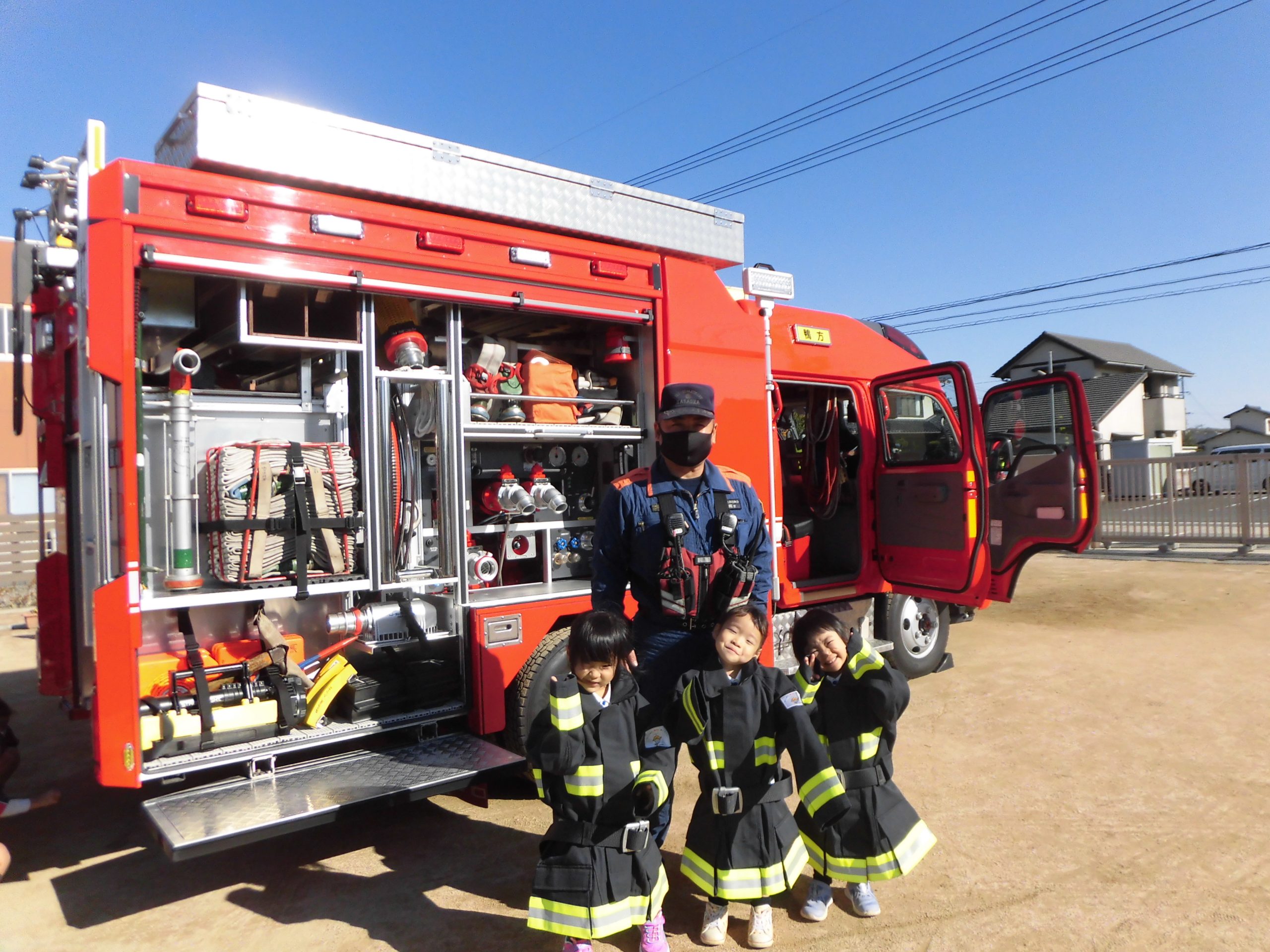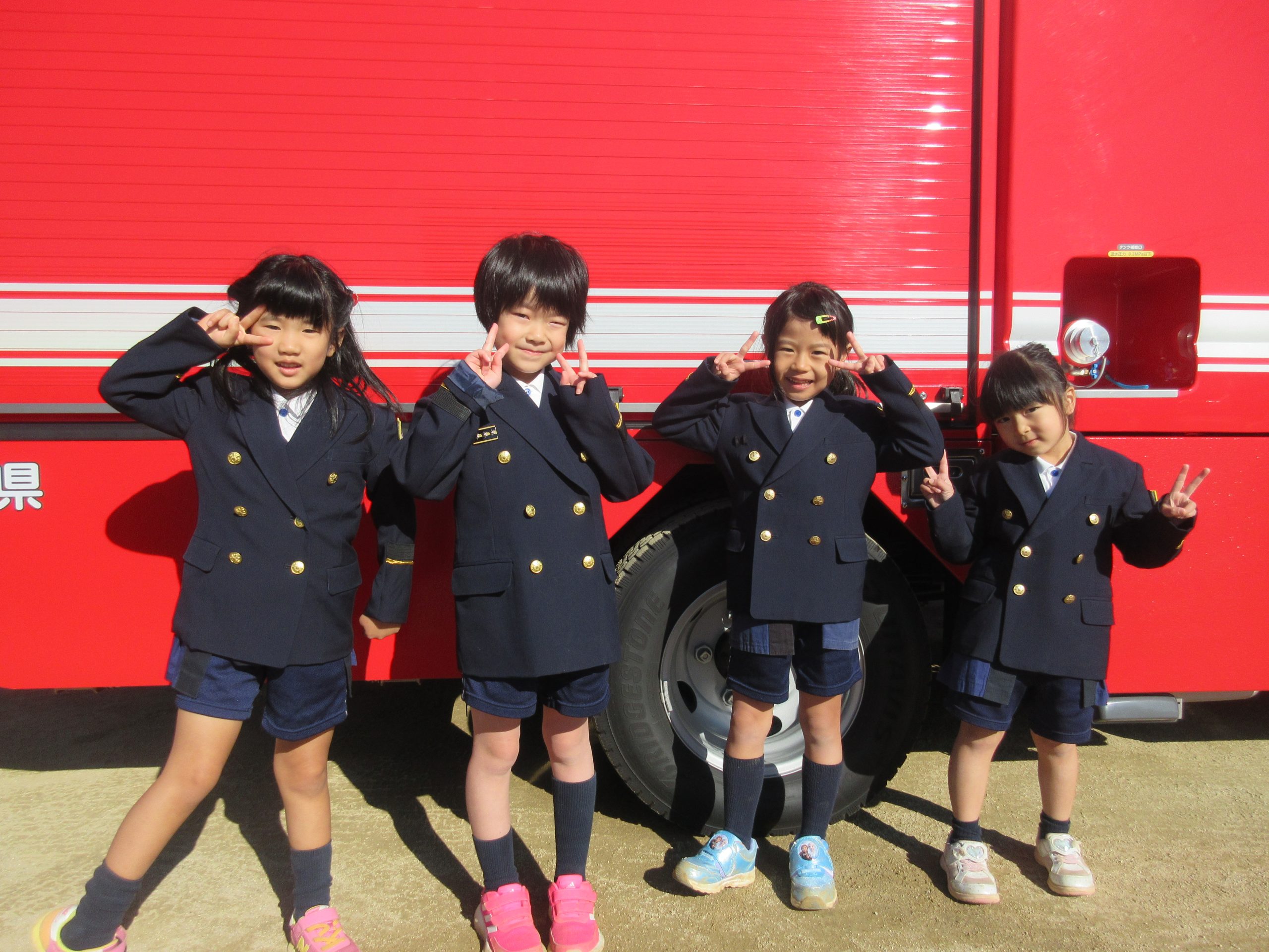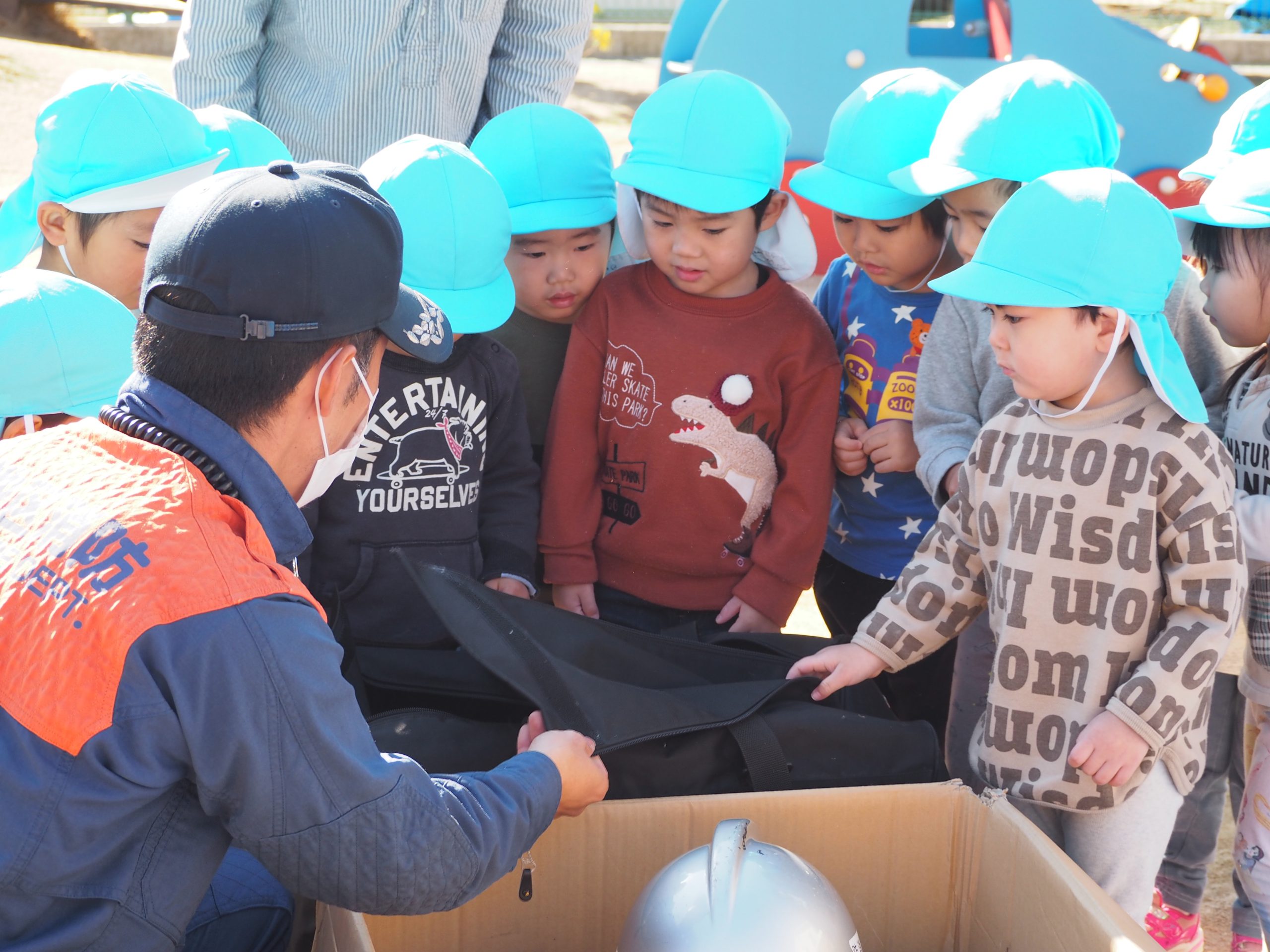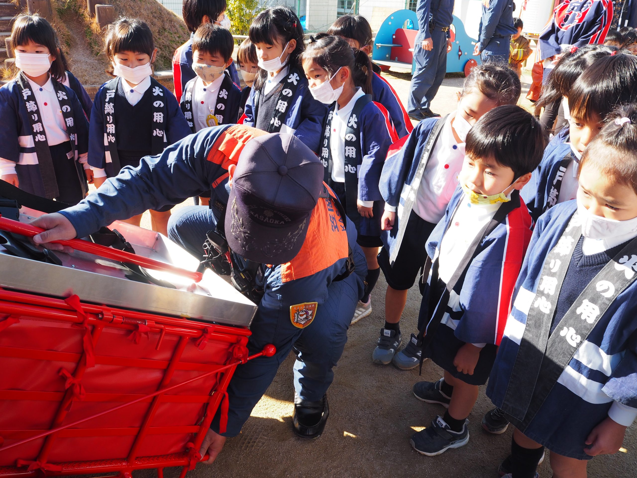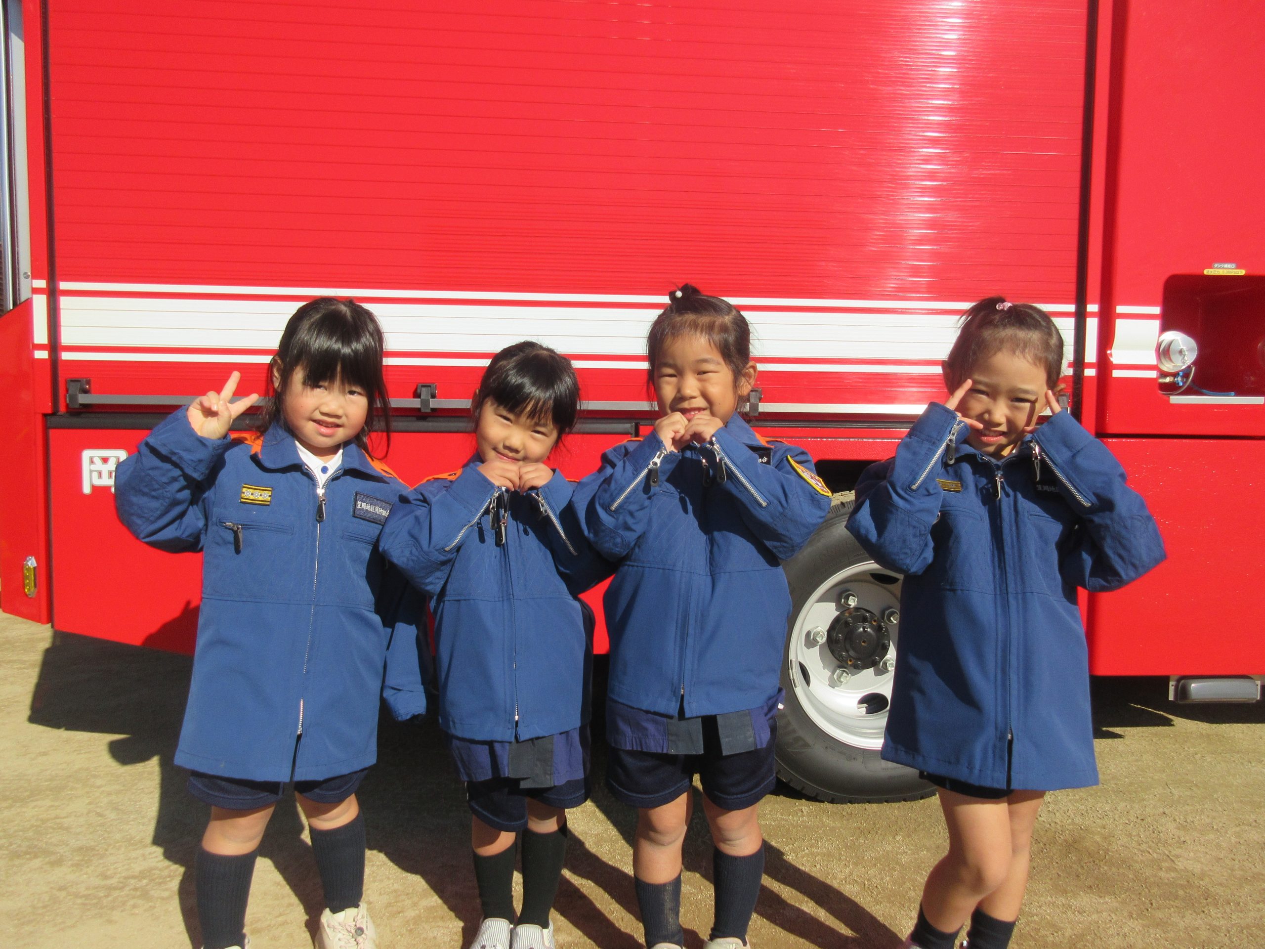 今日は、鴨方消防署の方に来ていただき、幼年消防クラブに参加しました。
