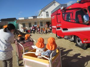 園庭に消防車が来ていて、子ども達は大興奮!!