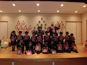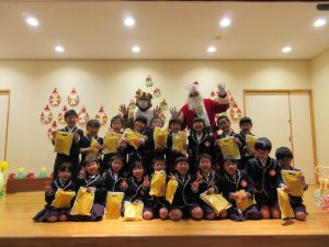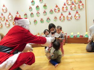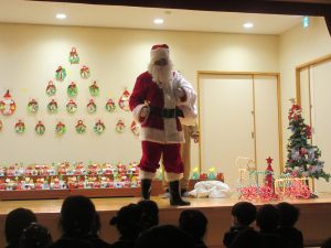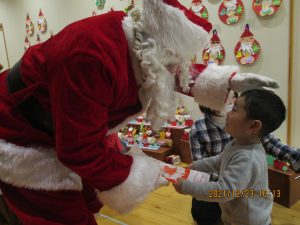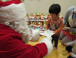 最初はサンタさんにドキドキしていた子どもたちも笑顔を見せてくれました。