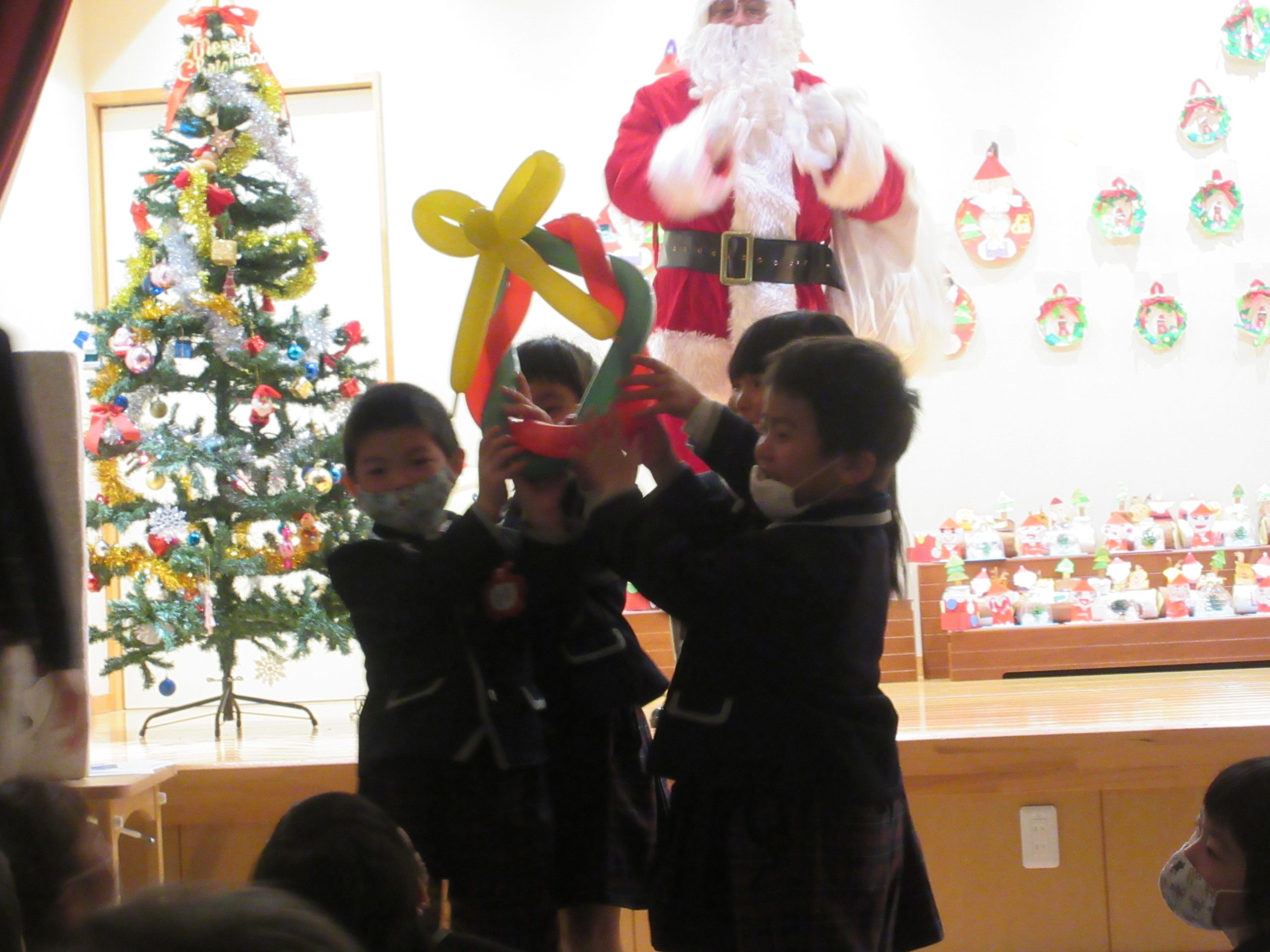 先生からの出し物を楽しんだ後は、サンタさんに届くように、「あわてんぼうのサンタクロース」の歌を歌いました。
