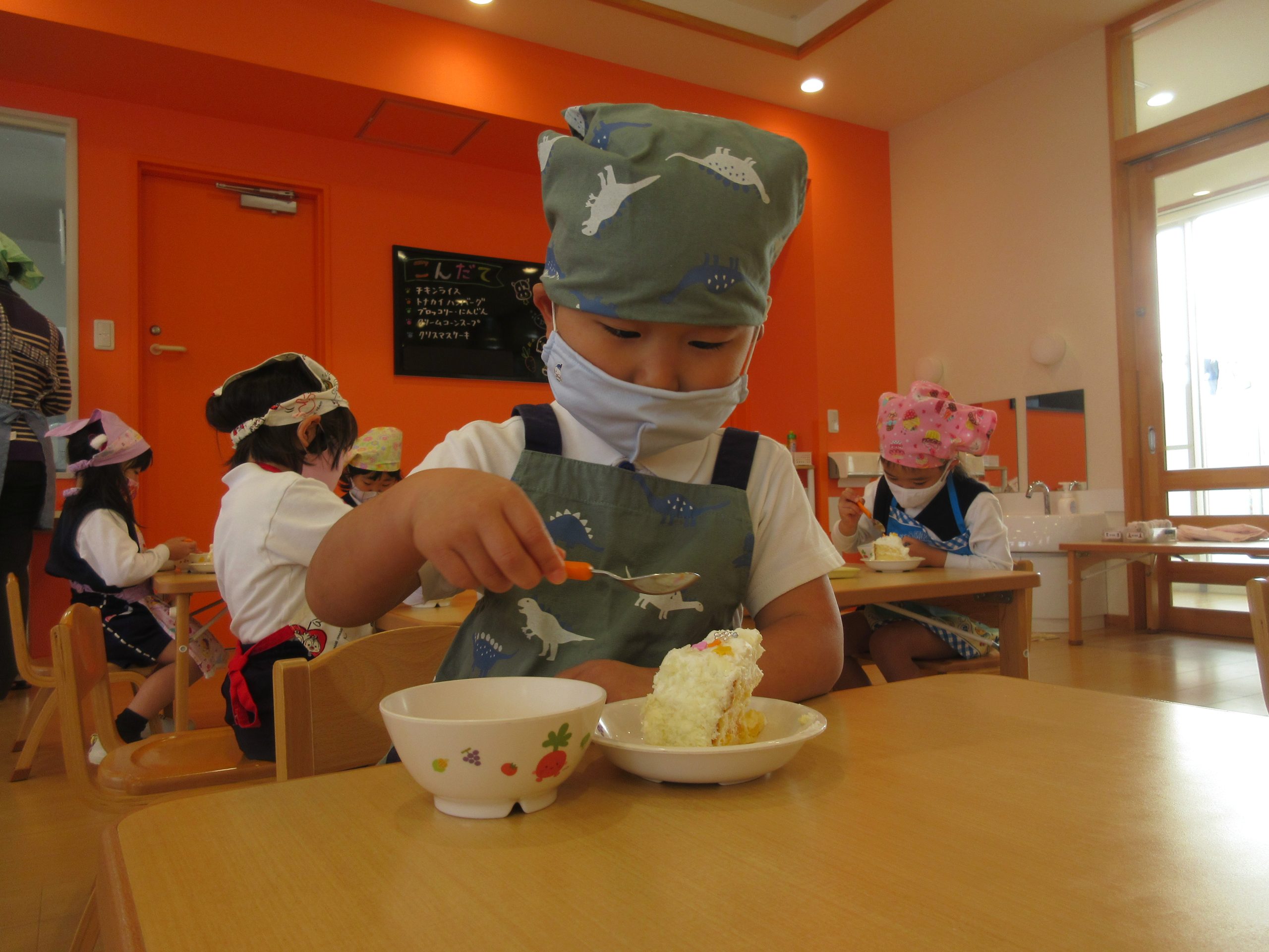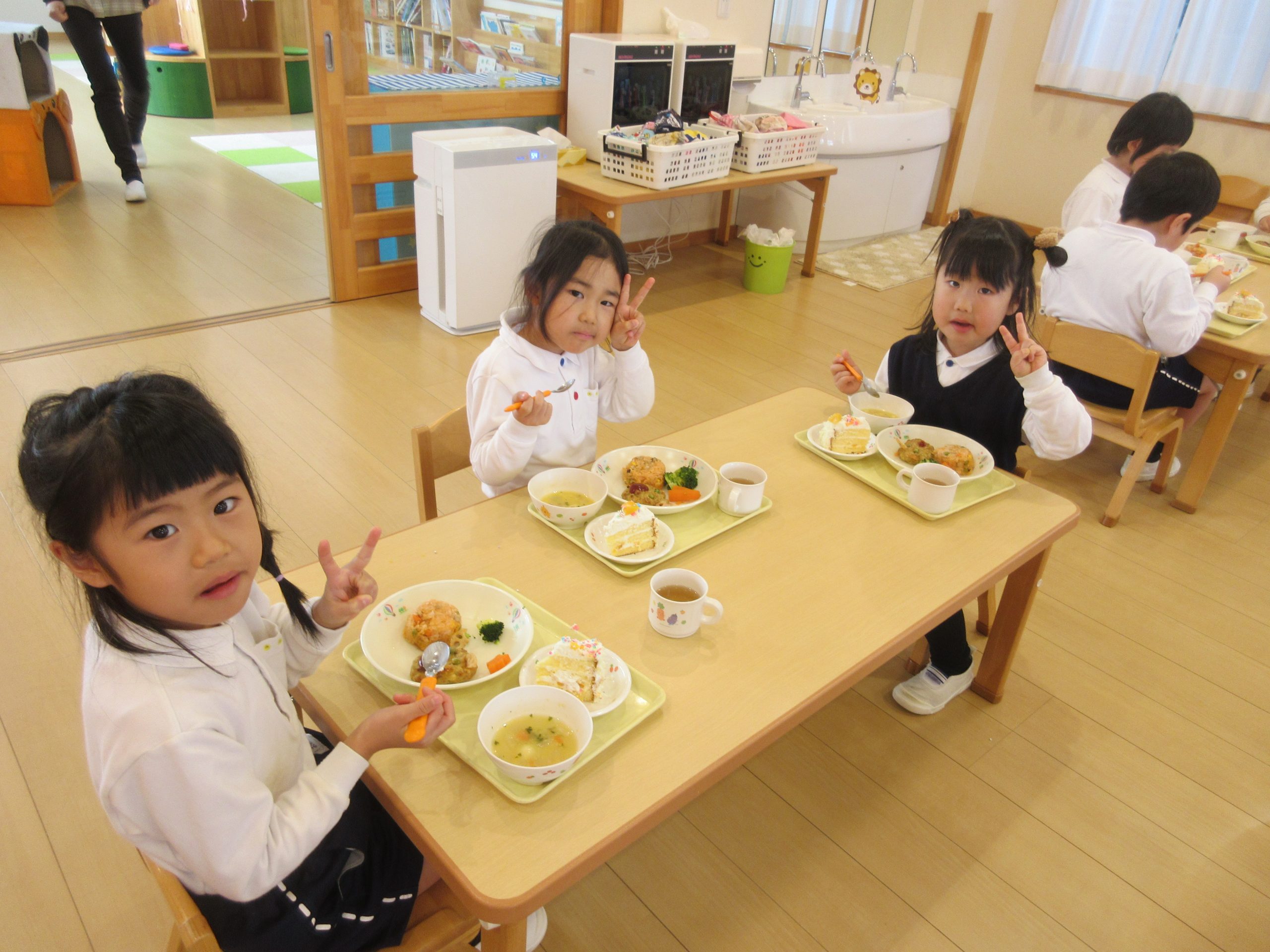 今日の給食はトナカイハンバーグで、子どもたちは大喜び!