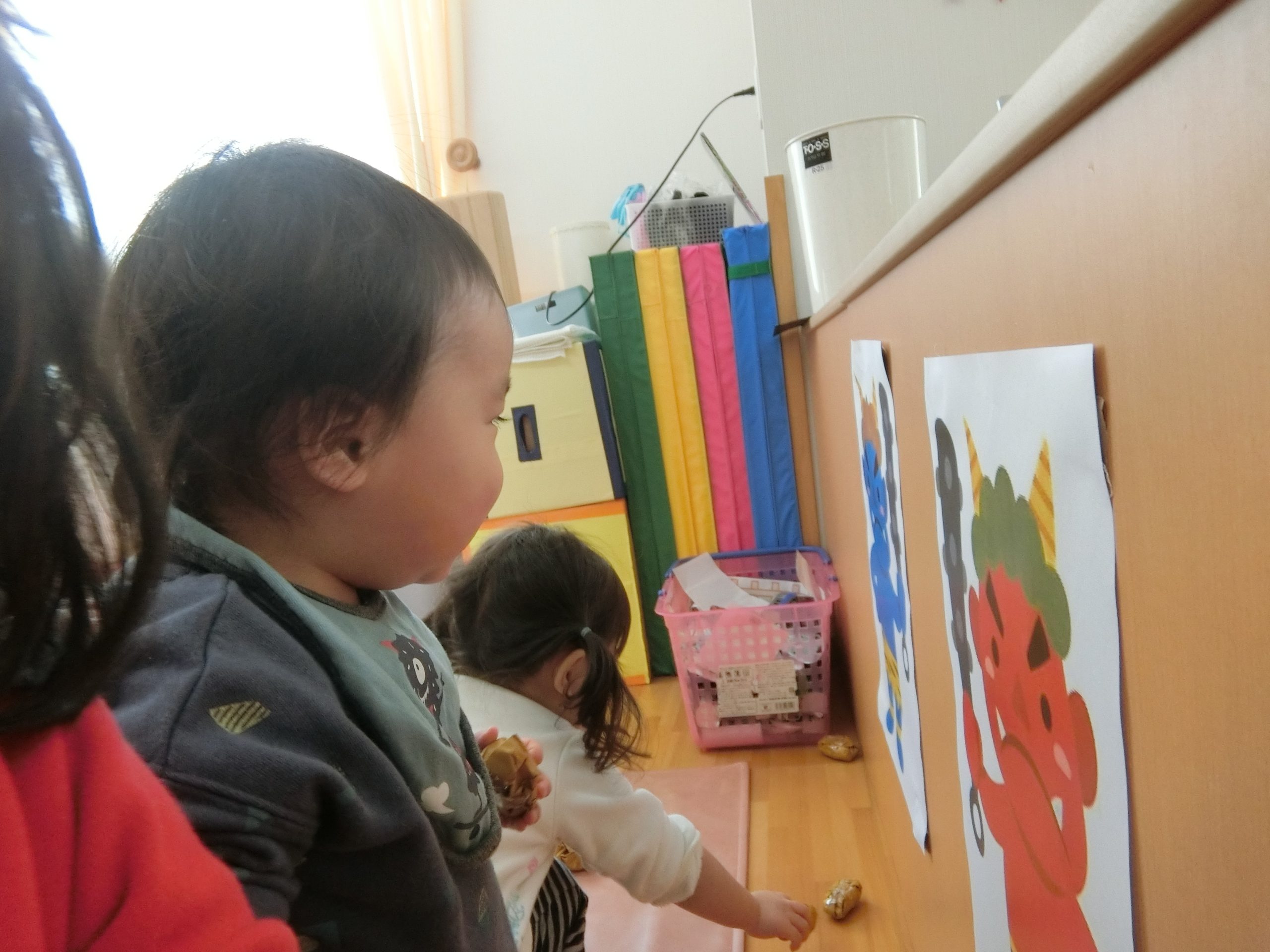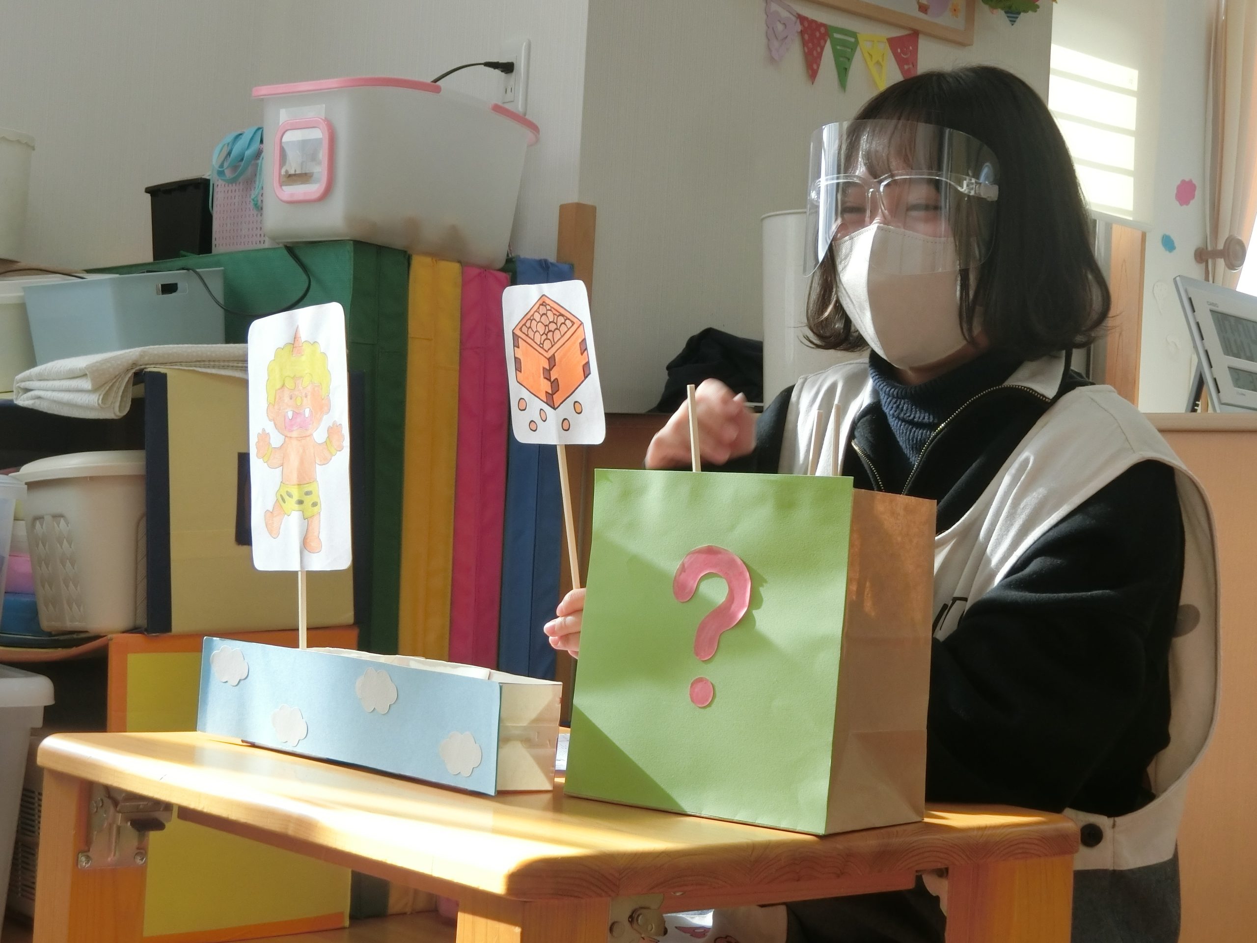 節分がありました!!ペープサートを見たり「鬼のパンツ」の曲に合わせて踊ったり・・・