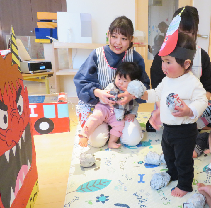 少人数ならではのきめの細かい保育と保護者支援をしていきます。ゆったりとした中で、一人ひとりの発達に応じた温かみのある保育をしています。また、家庭と十分に連携をとりながら、一人ひとりの発達に応じ、生活習慣を身に着けていきます。